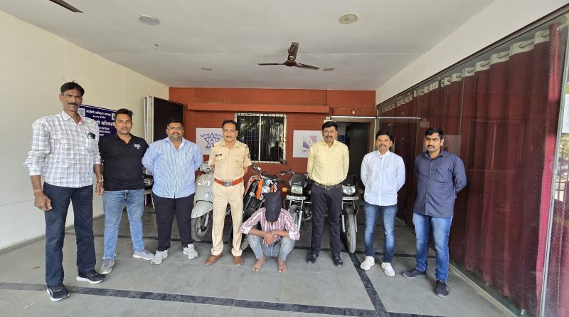 बिबवेवाडी पोलीसांनी सराईत वाहनचोरटयास अटक करून वाहनचोरीचे तिन गुन्हे उघडकीस आणून चार दुचाकी वाहने जप्त केली.