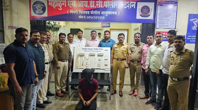 महा पोलिस न्यूज ऑनलाईन पुणे :- श्री नितीन शहाजी कर्षे वय ३४ वर्ष, धंदा शेती, व्यापार व क्रेशरप्लॅन्ट रा. मोई, इंडीयन ऑइल पेट्रोल पंपाशेजारी, मोई निघोजे रोड लगत ता. खेड जि. पुणे यांनी दि. २५/१२/२०२३ रोजी १७.०० वाजता ते २१.४५ वाजताचे दरम्यान मौजे मोई गावचे हद्दीत, इंडीयन ऑइल पेट्रोल पंपाशेजारी, मोई निघोजे रोड लगत ता. खेड जि. पुणे येथे फिर्यादीचे राहते घराचे कोणीतरी अज्ञात चोरटयाने पाठीमागील बाजुने जिन्या जवळील खिडकीचे लोखंडी ग्रिलचे बार कशाने तरी कापुन त्यावाटे आत प्रवेश करुन आतील सहा बेडरुम मधील वेगवेगळी लाकडी कपाटे कशाचे तरी सहयाने उचकटुन त्यातील सोन्याचे दागिणे एकुण ४७.८ तोळे वजनाचे त्यात सोन्याचे गंठण, मिनी गंठण, राणीहार, चैन, अंगठया कानातील कर्णफुले जोड, बांगडया, ब्रेसलेट कडे व रोख रक्कम ५,१५,०००/- लाख रुपये असा एकुण (तीस लाख अड्डेचाळीस हजार चारशे रुपये) अक्षरी ३०,४८,४००/- रुपये किंमतीचा मुददेमाल घरफोडी चोरी करुन चोरुन नेला म्हणून तक्रार दिल्याने महाळुंगे एमआयडीसी पोलीस स्टेशन गु.र.नं. ८६५/२०२३ भा. द. वि.क. ४५७,३८० अन्वये अज्ञात चोरटयाविरुध्द गुन्हा दाखल करण्यात आला होता. दाखल गुन्हा हा घर फोडी सारखा गंभीर स्वरुपाचा गुन्हा असुन सदरबाबत मा. पोलीस आयुक्त सा, पिंपरी चिंचवड पोलीस आयुक्तलाय यांनी वरीष्ठ पोलीस निरीक्षक, महाळुंगे एमआयडीसी पोलीस स्टेशन यांना सीसीटीव्ही, तांत्रिक गोष्टी व गुप्त बातमीदारा मार्फत अज्ञात आरोपीचा शोध घेवुन गुन्हा उघडकीस आणणेबाबत आदेशित केले होते. दाखल गुन्हयाचे तपासामध्ये वरीष्ठ पोलीस निरीक्षक, महाळुंगे एमआयडीसी पोलीस स्टेशन यांनी मा. वरीष्ठांच्या सुचना व आदेशाप्रमाणे तपास पथकातील अधिकारी व अंमलदार यांना मार्गदर्शन केल्यावर तपास पथकातील अधिकारी व अंमलदार हे गुन्हयाचे तपासाचे अनुशंगाने मौजे मोई, निघोजे, कुरुळी परीसरात पेट्रोलिंग करीत असताना चिंबळी फाटा ते कुरुळी गावाकडे जाणारे रोडवर डोंगरवस्ती येथे एक इसम लाल रंग असलेल्या व्हिलच्या स्कुटीवर दिनांक ०२/०१/२०२४ रोजी २१/१५ वाजताचे दरम्यान संशयित रित्या फिरत असताना आढळुन आल्याने त्यास तपास पथकातील अंमलदार यांनी पकडण्याचा प्रयत्न केला असता तो स्कुटी घेवुन पळुन जावु लागल्याने त्यास शिताफीने पाठलाग करुन पकडुन त्याचेकडे तपास करता त्याने सदरचा गुन्हा केल्याचे कबुल केले त्याचेकडुन सोने, रोख रक्कम व मोटार सायकल जप्त करण्यात आली आहे. ०१ अ पोलीस ठाणे महाळुंगे गु.र.नं. व कलम८६५/२०२३ भा.द.वि.क. ४५७,३८० एकूण जप्त माल ४७.८ तोळे वजनाचे सोने त्यात सोन्याचे किमत २९,०३,४००/- गंठण, मिनी गंठण, राणीहार, चैन, रुपये अंगठया कानातील कर्णफुले जोड, बांगडया, ब्रेसलेट कडे व रोख रक्कम ३,००,०००/- लाख रुपये व गुन