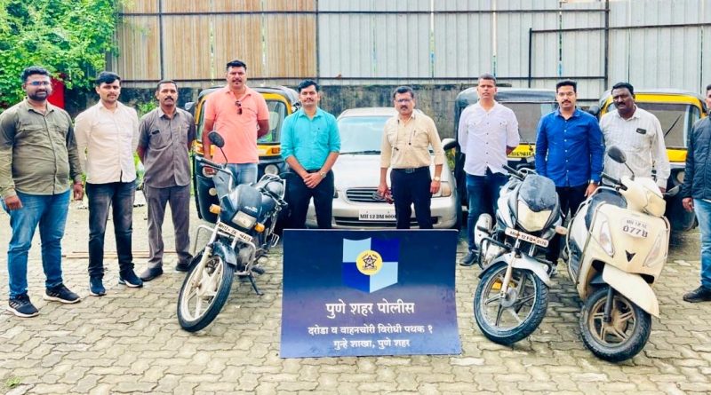 अशी **एकुण 07 वाहनचोरीचे गुन्हे त्यामध्ये 01 चारचाकी वाहन ,03 तीन चाकी ऑटो रिक्षा व 03 मोटार सायकली** असे गुन्हे उघडकीस आणले असून **एकूण किंमती 2,50,000/- रु किंमतीचा मुद्देमाल जप्त करण्यात आला आहे*