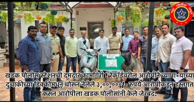 सदरची कामगिरी ही मा. अपर पोलीस आयुक्त पश्चिम प्रादेशीक विभाग, पुणे शहर (अतिरिक्त कारभार) श्री. मनोज पाटील, मा. पोलीस उप-आयुक्त परि.२ पुणे श्रीमती स्मार्तना पाटील, मा. सहाय्यक पोलीस आयुक्त स्वारगेट विभाग, पुणे श्री. राहुल आवारे, यांचे मार्गदर्शनाखाली भारती विदयापीठ पोलीस स्टेशनचे वरिष्ठ पोलीस निरीक्षक श्री. सावळाराम साळगांवकर, पोलीस निरीक्षक (गुन्हे) श्री. राहुलकुमार खिलारे, सहाय्यक पोलीस निरीक्षक विश्वास भाबड, पोलीस उप निरीक्षक निलेश मोकाशी, प्रियांका निकम व पोलीस अंमलदार किरण देशमुख, राहुल शेडगे, नरेंद्र महांगरे, महेश बारवकर, मंगेश पवार, सचिन सरपाले, सचिन गाडे, निलेश खैरमोडे, मितेश चोरमोले, अभिनय चौधरी, सागर बोरगे, तुकाराम सुतार व महीला पोलीस अंमलदार सोनाली गावडे, चंदन रसाळ, प्रज्ञा निंबाळकर यांच्या पथकाने केली आहे.