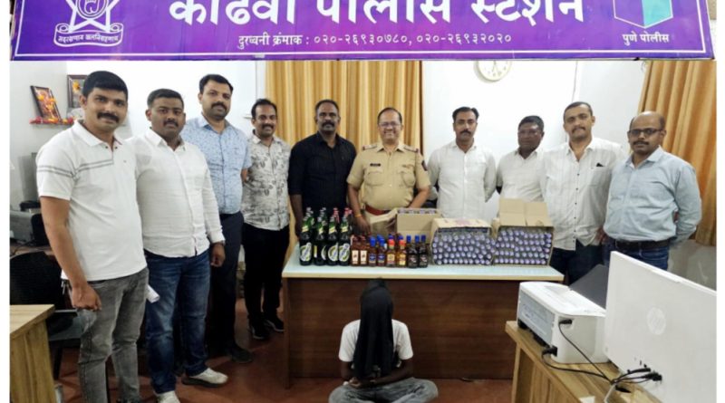 कोंढवा पोलीस स्टेशन कडील रेकॉर्ड वरील आरोपी नामे कासम दस्तगीर शेख हा त्याच्या एका सहका-यासह मिळून मा. जिल्हाधिकारी साो., पुणे जिल्हा यांनी डॉ. बाबासाहेब आंबेडकर जयंती सन २०२५ चे अनुषंगाने ड्राय डे घोषीत केलेला असताना सदर आदेशाचा भंग करून त्यांचे ओळखीच्या लोकांना देशी व विदेशी दारूची विक्री करीत आहे. अशी खात्रीलायक बातमी मिळाल्याने कोंढवा पोलीस स्टेशनचे वरिष्ठ पोलीस निरीक्षक विनय पाटणकर यांनी सदर ठिकाणी छापा टाकून कायदेशिर कारवाई करण्याबाबत आदेशीत केले. त्यानंतर कोंढवा तपास पथकाचे पोलीस उपनिरीक्षक बालाजी डिगोळे यांनी तपास पथकातील अंमलदारांसह सदर ठिकाणी छापा टाकला असता रेकॉर्ड वरील आरोपी कासम दस्तगीर शेख हा पोलीस आल्याचे पाहून सदर ठिकाणावरून पळून गेला. त्याचा साथीदार नामे विकासकुमार जग्गा सिंग, वय १९ वर्षे, गल्ली नं. ३६, पत्रा चाळ, शिवनेरीनगर, कोंढवा खुर्द, पुणे (मुळ रा. गाव सेदहा, पोस्ट पिरो, थाना तारारी, जिल्हा भोजपूर, बिहार.) यास पोलीसांनी ताब्यात घेवून त्यांचे ताब्यातून देशी विदेशी दारूच्या बाटल्या, रोख रक्कम असा एकुण २७,५००/- रू किं चा मुद्देमाल जप्त करून त्याचे विरोधात गु.र.नं. ३१२/२०२५ भा.न्या.सं. कलम २२३ व मुंबई प्रोहिबीशन अॅक्ट कलम ६५ (ई) प्रमाणे गुन्हा दाखल केला आहे.