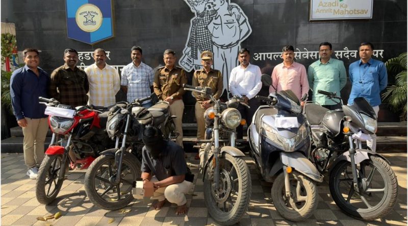 त्याअनुषंगाने हडपसर पोलीस स्टेशन हद्दीत तपास पथक पोलीस अधिकारी पोलीस उप-निरीक्षक हसन मुलाणी, पोलीस उप-निरीक्षक सत्यवान गेंड व पोलीस अंमलदार यांनी वाहनचोरी संबंधित माहिती गोळा करून विविध भागात गस्ती व तपास सुरू केला. दरम्यान पोलीस अंमलदार रविकांत कचरे यांना मिळालेल्या गोपनीय माहितीनुसार सदर पथकाने बार्शी, तुळजापूर, लातुर परिसरात शोध मोहिम राबवून आरोपी नामे रविंद्र शिवाजी घाटे वय ४० वर्ष रा. मु.पो. दहीवाडी, ता. तुळजापूर जिल्हा धाराशिव यास ताब्यात घेतले. त्याचेकडे केले तपासामध्ये त्याने गुन्हा केल्याची कबुली देवून त्याने चोरी करून नेलेल्या ४ दुचाकी या त्याचेकडून हस्तगत करण्यात आल्या आहेत. आरोपीस हडपसर पोलीस स्टेशन गु.र.नं ८०७/२०२५ भा. न्या. सं.क.३०३ (२) यामध्ये अटक करण्यात आली आहे.