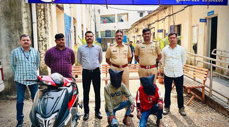 ३४ अन्वये गुन्हा दाखल आहे. सदर दाखल गुन्हयातील नमुद अनोळखी इसमांचा तपास चालू असताना शिवाजीनगर पोलीस ठाणेकडील तपास पथकाचे प्रभारी पोलीस उप निरीक्षक श्री. प्रताप साळवे, पोलीस अंमलदार पोहया, ९४७ पवार पो.शि. ४५९२ दडस यांनी समांतर तपास चालू केला. पो.शि. ४५९२ दडस यांना सिसिटीव्ही फुटेजचे आधारे व त्यांचे खास बातमीदारामार्फत बातमी मिळाली की दि. १५/१२/२०२३ रोजी मनपा येथे महिलेला लुटणारे अनोळखी इराग हे जुनी कामगार पुतळा वसाहत, शिवाजीनगर येथे आहे अशी खात्रीशीर बातमी मिळाल्याने ती बातमी त्यांनी तपासपथकाचे प्रभारी पोलीस उपनिरिक्षक श्री प्रताप साळवे यांना सांगतलेने त्याची खात्री करुन मिळालेली बातमी पो.उ.नि. श्री प्रताप साळवे यांनी वरिष्ठ पोलीस निरीक्षक श्री. अरविंद माने, यांना सांगुन त्यांचे आदेशाप्रमाणे व सहा. पोलीस आयुक्त, श्री. वसंत कुवर, मा. संदीपसिंह गिल्ल, पोलीस उप-आयुक्त परि-२, मा. श्री. प्रविणकुमार पाटील, अप्पर पोलीस आयुक्त, पश्चिम प्रा. विभागाचे यांचे मार्गदर्शनाखाली तपास पथकाचे पोलीस उप-निरीक्षक श्री प्रताप साळवे, पोलीस अंमलदार पौहवा, ९४७ पवार, पोहवा, ७८३० शेख, पोहवा. ६६४५ काळे, पो.शि. ४५९२ दडस यांनी दोन टिम करुन जुनी कामगार पतळा वसाहत येथील पुलाचे मागे पुढे सापळा रचुन बातमीत मिळालेल्या वर्णनाचा इसम हा एका अनोळखी इसमासह टीव्हीएस गाडीसह थांबलेला असल्याचे दिसल्याने वरील स्टाफचे मदतीने दि. १६/१२/२०२३ रोजी १५/२५ वा. त्यांस जागीच पकडले, तेव्हा त्यांस त्यांचे नाव पत्ता विचारता त्यांनी आपली नावे आदीत्य विजय शिंदे, वय-२१ वर्षे, रा-करपे वाडा, सोमवारपेठ, पुणे असे असल्याचे सांगितले व दुसन्या इसमाने त्याचे नाव गणेश चंद्रकांत कवडे, वय-१९ वर्षे रा-सदानंदनगर, तिसरा मजला, फ्लॅट नं-३२५, मंगळवार पेठ, पुणे असे सांगीतले. त्यांचेकडे सदर दाखल गुन्हयाबाबत तपास केला असता त्यांनी दाखल गुन्हा केला असल्याचे कबुल केले आहे. गुन्हयातील वापरलेली स्कुटर ही सुध्दा आरोपीकडुन जप्त करुन हस्तगत करण्यात आली आहे.