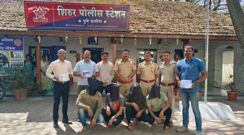 सदरची कामगिरी मा. पोलीस अधीक्षक श्री. पंकज देशमुख, साो. पुणे ग्रामीण, मा. अपर पोलीस अधीक्षक श्री. रमेश चोपडे सो. पुणे विभाग, मा. उपविभागीय पोलीस अधिकारी साो. श्री. प्रशांत डोले शिरुर विभाग यांचे मार्गदर्शनाखाली स्थानिक गुन्हे शाखेचे पोलीस निरीक्षक अविनाश शिळीमकर, पोसई गणेश जगदाळे, पोलीस अंमलदार तुषार पंदारे, जनार्दन शेळके, राजू मोमोण, अतुल डेरे, विक्रम तापकीर, संजय जाधव, योगेश नागरगोजे, चालक सहाफौ मुकुंद कदम चालक पो को दगडू विरकर यांनी केली आहे.