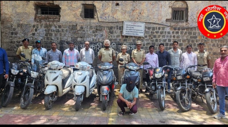 महा पोलिस न्यूज ऑनलाईन पुणे:- फरासखाना पोलीस स्टेशन हद्दीत वारंवार होणाऱ्या वाहन चोरीच्या अनुषंगाने वरिष्ठ पोलीस निरीक्षक सो. प्रशांत भस्मे यांच्या आदेशाने दिनांक २२/०४/२०२४ रोजी तपास पथकातील पोलीस अंमलदार सहाय्यक पोलीस फौजदार रिजवान जिनेडी, पो.हवा ५८५३ दळवी, पो.हवा ६४४२ स्वामी, पो.शि ८८२३ माळवदकर, पो.शि ८८८५ कांबळे, पो.शि ९१९७ खुट्टे असे नेहरु चौक भाजी मार्केट भागात पेट्रोलींग करत होते. पेट्रोलींग करत असताना पोलीस अंमलदार वैभव स्वामी, प्रविण पासलकर, समिर माळवदकर, संदीप कांबळे हे वाहन चोरीच्या अनुषंगाने वारंवार सी.सी.टी.व्ही कॅमेरे चेक करत असल्याने सी.सी.टी.व्ही फुटेज मधील वर्णनाप्रमाणे एक मिळता-जुळता इसम नेहरु चौक, भाजी मार्केट येथे आला असलेबाबत पोलीस अंमलदार समीर माळवदकर यांना गोपनिय बातमीदारामार्फत माहीती मिळाल्याने पोलीस अंमलदार समिर माळवदकर, रिजवान जिनेडी, गणेश दळवी, वैभव स्वामी, प्रविण पासलकर, संदीप कांबळे, सुमित खुट्टे यांना बातमीदाराने सांगितलेल्या वर्णनाप्रमाणे एक इसम दिसुन आल्याने त्यास ताब्यात घेऊन फरासखाना पोलीस स्टेशन आणुन त्यास त्याने त्याचे नाव व पत्ता विचारला असता त्याने त्याचे नाव व पत्ता खंड् दिलीप चौधरी, वय-२३ वर्षे, रा-मु.पो. निदुर, साधनाथ मंदीराशेजारी, ता-निलंगा, जि-लातुर असे सांगितले. त्याच्याकडे अधिक चौकशी करता सदर इसमाने फरासखाना पोलीस स्टेशन हद्दीतील रविवार पेठ, नेहरु चौक भाजी मार्केट, मंडई परिसरातुन मोटारसायकली चोरी केल्याचे सांगुन चोरलेल्या दुचाकी मोटारसायकल त्याच्या मुळगांवी ठेवल्या असल्याचे कबुल केल्याने त्याच्या मुळगांवी जाऊन शिरुर आनंतपाळ पोलीस स्टेशनकडील स्थानिक पोलीस स्टेशनचे पोलीस अमलदार पो.हवा १३५६ एस.एस. शिंदे यांची मदत घेऊन फरासखाना पोलीस स्टेशनकडील सहाय्यक पोलीस निरीक्षक, श्री. वैभव गायकवाड, पोलीस अंमलदार रिजवान जिनेडी, वैभव स्वामी, राकेश क्षीरसागर, प्रविण पासलकर, सुमित खुट्टे, समिर माळवदकर यांनी १३ दुचाकी मोटारसायकल जप्त केल्या आहेत. सदरचा आरोपी हा सन २०२१ पासुन वाहन चोरी करत असल्याचे दिसुन आले असुन सदरबाबत फरासखाना पोलीस स्टेशन येथे ७ गुन्हे, कोथरुड पोलीस स्टेशन २ गुन्हे, चर्तुः श्रृंगी पोलीस स्टेशन १ गुन्हा, विश्रामबाग पोलीस स्टेशन ३ गुन्हे असे एकुण १३ गुन्हयातील मोटारसायकल आरोपी खंडु दिलीप चौधरी, वय-२३ वर्षे, मु.पो. निदुर, ता-निलंगा, जि-लातुर याने चोरी केल्याचे निष्पन्न झाले आहे.