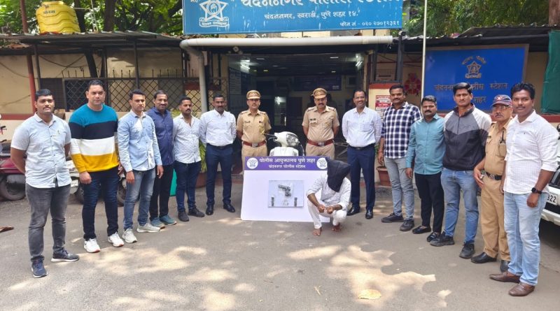महा पोलिस न्यूज ! ऑनलाईन पुणे:– दि.०६/१०/२०२४ रोजी चंदननगर पो.स्टे कडील तपास पथकातील पोलीस उपनिरीक्षक राहुल कोळपे, पोलीस अंमलदार श्रीकांत कोद्रे, सुरज जाधव, शेखर शिंदे असे पोलीस स्टेशन हद्दीत कर्तव्यावर असताना पोलीस अंमलदार श्रीकांत कोद्रे, पोलीस अंमलदार सुरज जाधव यांना त्यांचे गोपनिय बातमीदारामार्फत बातमी मिळाली की, रेकार्डवरील आरोपी नामे समाधान लिंगाप्पा विभुते वय ३२ वर्षे रा. मु पो पळशी सुपली ता. पंढरपुर जि. सोलापूर हा चंदननगर पोलीस स्टेशनचे हददीमध्ये सुंदराबाई शाळा येथे पिस्टल विक्री करण्यासाठी येणार आहे अशी माहिती मिळाल्यानंतर, त्यांनी सदरची बातमी पोलीस उपनिरीक्षक राहुल कोळपे यांना कळविल्यानंतर, मा वरिष्ठाचे मार्गदर्शनाखाली वरील अधिकारी व पोलीस अंमलदार हे सुदंराबाई शाळा येथे सापळा रचुन थांबले असता, रेकार्डवरील आरोपी समाधान विभुते हा दुचाकीसह आला असता, त्याला पोलीस उभे असल्याची चाहुल लागताच तो पळुन जावु लागल्याने पोलीसांनी त्याला सिनेस्टाईलने पाठलाग करुन दुचाकीसह ताब्यात घेतला असता, त्यांच्याकडील असलेल्या काळया रंगाच्या सॅकबॅगमध्ये देशी बनावटीचे पिस्टल व बॅगमधील एका छोटया प्लास्टीकच्या पिशवीमध्ये पितळी धातुची प्रत्येकी २५/- रु.कि.ची एकुण ५ पितळी धातुची के एफ ७.६५ ची काडतुसे मिळुन आले आहे. सदर आरोपीकडुन ९५,०००/- रु. कि. चा मुद्देमाल हस्तगत करण्यात आला आहे. त्याचे विरूद्ध पोलीस अंमलदार सुरज जाधव यांनी सरकारतर्फे फिर्याद दिली असुन चंदननगर पो.स्टे गु.र.न ५१०/२०२४, भारतीय हत्यार अधिनियम कलम ३(२५), महाराष्ट्र पोलीस अधिनियम कलम ३७(१) (३), १३५ अन्वये गुन्हा नोंद करण्यात आला असुन त्यास अटक केली आहे. पुढील तपास पोलीस उपनिरीक्षक राहुल कोळपे, चंदननगर पोलीस स्टेशन हे करीत आहे.