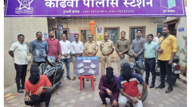 वरील नमुद कारवाई ही मा. पोलीस आयुक्त साो., मा. अमितेश कुमार, मा. सह पोलीस आयुक्त साो., श्री रंजनकुमार शर्मा, अतिरिक्त पोलीस आयुक्त साो., पुर्व प्रादेशिक विभाग श्री मनोज पाटील, मा. पोलीस उप-आयुक्त साो., परिमंडळ-५, श्री ए. राजा, मा. सहा. पोलीस आयुक्त साो., वानवडी विभाग, श्री धन्यकुमार गोडसे, मा. वरिष्ठ पोलीस निरीक्षक साो., विनय पाटणकर, पोलीस निरीक्षक गुन्हे श्री सुरज बेंद्रे, पोलीस निरीक्षक गुन्हे श्री रौफ शेख यांचे मार्गदर्शनाखाली कोंढवा पोलीस स्टेशन येथील तपास पथकाचे सहा. पोलीस निरीक्षक लेखाजी शिंदे, पोलीस उपनिरीक्षक बालाजी डिगोळे, पोलीस हवालदार विशाल मेमाणे, निलेश देसाई, सतिश चव्हाण, पोलीस नाईक गोरखनाथ चिनके, पोलीस अंमलदार सुजित मदन, लक्ष्मण होळकर, संतोष बनसुडे, सुरज शुक्ला, सागर भोसले व शाहिद शेख यांच्या पथकाने केली आहे.