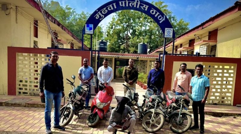 महा पोलीस न्यूज ! ऑनलाईन पुणे :- मुंढवा पोलीस ठाणेचे हद्दीत तपास पथकाचे अधिकारी आर.व्ही. महानोर व तपास पथक अंमलदार हे पेट्रोलिंग करीत असताना ते फिरत फिरत लोणकर चौक, मुंढवा पुणे येथे आले असता पो. हवा. शिवाजी जाधव यांना एका दुचाकीवर असलेला इसम हा संशयास्पद वाटल्याने त्यास थांबवून त्याचे नाव पत्ता विचारले असता त्याने आपले नाव मिथुन सुगंध लोखंडे वय २२ वर्षे, रा.सर्वे नंबर १०३५, महात्मा गांधी सोसा सहकारनगर नंबर १, सध्या रा. मिरेकरवस्ती शंकरमठाजवळ हडपसर पुणे, असे सांगितले असता त्याचे ताब्यात असलेल्या गाडीबाबत चौकशी करता तो उडवाउडवीची उत्तरे देवु लागल्याने त्यास मुंढवा पोलीस स्टेशन येथे आणुन अधिक चौकशी करता सदर गाडी त्याने काही दिवसांपुर्वी पिगळेवस्ती घोरपडी येथुन चोरी केलेचे केल्याचे सांगीतले. त्याबाबत मुंढवा पोलीस ठाणेकडील अभिलेख तपासला असता गुन्हा रजि. नंबर १२/२०२५ बी.एन.एस. कलम ३०३(२) प्रमाणे दिनांक १३/०१/२०२५ रोजी दाखल असल्याचे निष्पन्न झाले आहे. त्याचेकडे अधिक तपास केला असता पुणे शहर हद्दीतुन चार मो.सा.ची चोरी केल्याचे कबुल करुन त्याने सदरच्या मो.सा. काढुन दिल्याने त्या दाखल गुन्ह्याचे पुरावेकामी जप्त करण्यात आलेल्या आहेत.