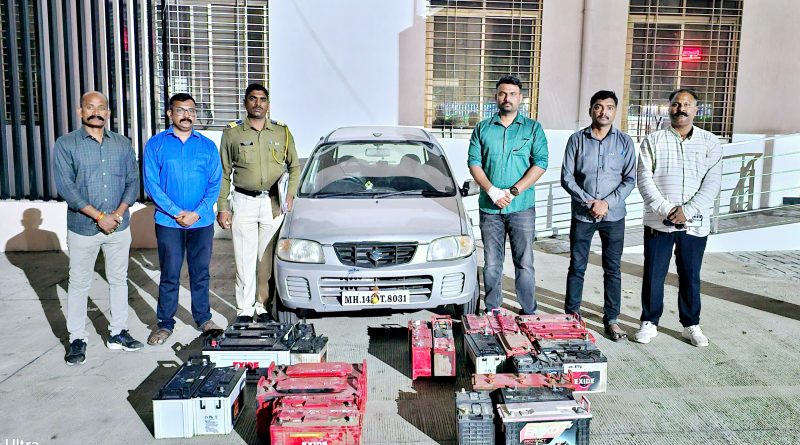 बॅटरी चोरीचे गुन्हयांचे अनुषंगाने स्था.गु.शा.चे पो.नि. अविनाश शिळीमकर यांनी सदर गुन्हयांचा आढावा घेवनू एक तपास पथक नेमण्यात आले होते. सदर पथकाने गुन्हयाची वेळ व ठिकाण याची माहिती घेत सदरचा गुन्हा करणारा व्यक्ती हा एकच असून गुन्हयाचे ठिकाणी एक सिल्वर रंगाची अल्टो कार चारचाकी वाहन येत आहे व बॅटरी चोरी करून त्याच वाहनातून बॅटरी नेली जात आहे अशी माहिती तपासात पुढे आली. सदर प्रकरणाचे अनुषंगाने पथकाने तपास चालू केला असता सदर गुन्हयातील वाहन हे इसम नामे केतन रोहीदास विधाटे रा. धालेवाडी ता. जुन्नर जि. पुणे हा वापरत आहे अशी माहिती बातमीदाराकडून मिळाली. त्याचा शोध घेत असताना तो दि. १५/०१/२०२५ रोजी नारायणगाव परिसरातील कोल्हेवाडी रोड येथे येणार असल्याची बातमी मिळाल्याने त्या ठिकाणी सापळा लावून त्यास कारसह ताब्यात घेण्यात आले. त्याचे नाव पत्ता विचारता त्याने त्याचे नाव केतन रोहीदास विधाटे वय २४ वर्षे रा. धालेवाडी ता. जुन्नर जि. पुणे असे असल्याचे सांगून त्याचे कडे गुन्हयाचे अनुषंगाने विचारपूस केली असता, त्याने एकूण ७ गुन्हे केल्याचे सांगितले व गुन्हयातील चोरी केलेल्या २८ बॅटरी त्याचेकडील कारमध्ये मिळून आल्या. गुन्हा करताना वापरलेली चारचाकी अल्टो कार व २८ बॅटरी असा एकूण ४,४४,४००/- रु. किंमतीचा मुद्देमाल हस्तगत करणेत आला आहे.